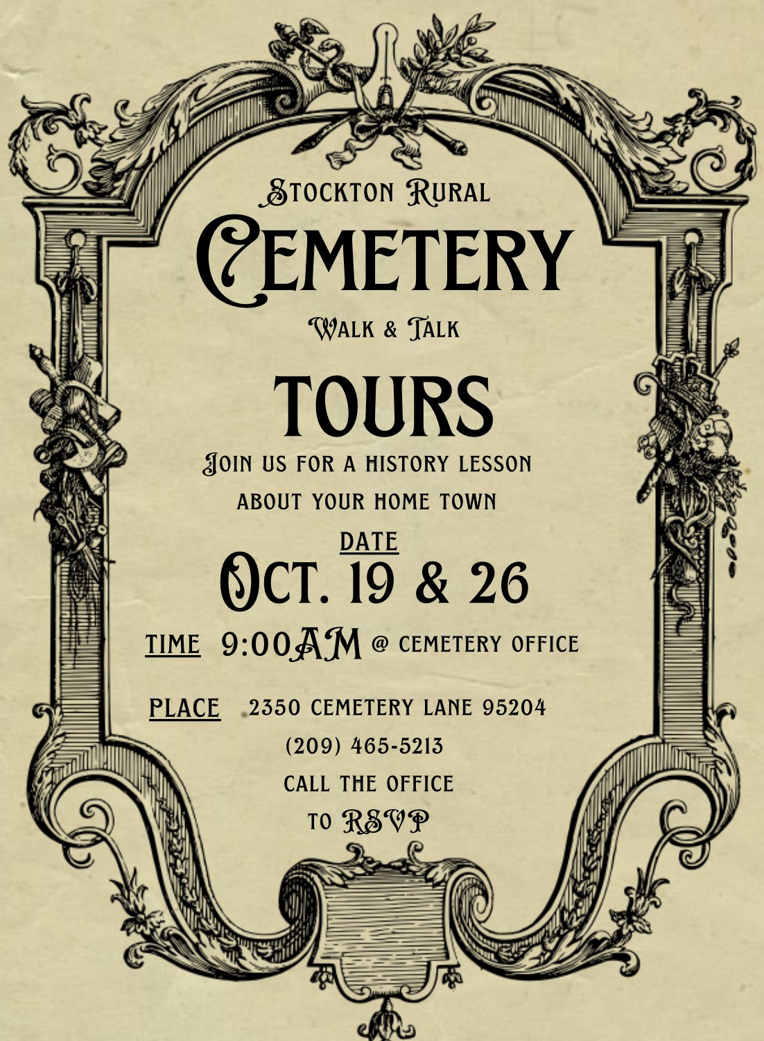 If you are interested in taking a tour of Stockton Rural Cemetery to learn about this historic treasure, please contact us. We also offer a host of events throughout the year to celebrate our historic treasure, join us for any of the events below.